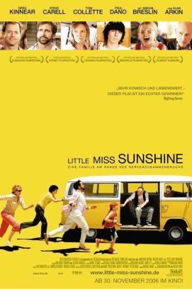 Die kleine Olive ist ein relativ normales, kleines Mädchen – doch irgendwie hat sie es bis in die Endrunde des „Little Miss Sunshine“-Schönheitswettbewerbs geschafft. Und weil jedes kleine Mädchen Unterstützung braucht, macht sich ihre komplette Familie mit ihr im VW-Bus auf den Weg zum Finale quer durch die Staaten. Dumm nur, dass in dieser Familie gar nichts gerade läuft. Ihr Vater ist ein erfolgloser Selbsthilfeguru, ihre Mutter muss sich um ihren schwulen Bruder Frank, einen College-Professor, der gerade einen Selbstmordversuch hinter sich hat, kümmern; ihr Bruder ist bekennender Nietzsche-Fan und hat ein Schweigegelübde abgelegt, bis er Jetpilot wird und ihr Großvater hat es sich nach seinem Rauswurf aus der Seniorenresidenz zwischen Pornoheften und Heroinschnupfen bequem gemacht. Beste Voraussetzungen für eine gute Reise …